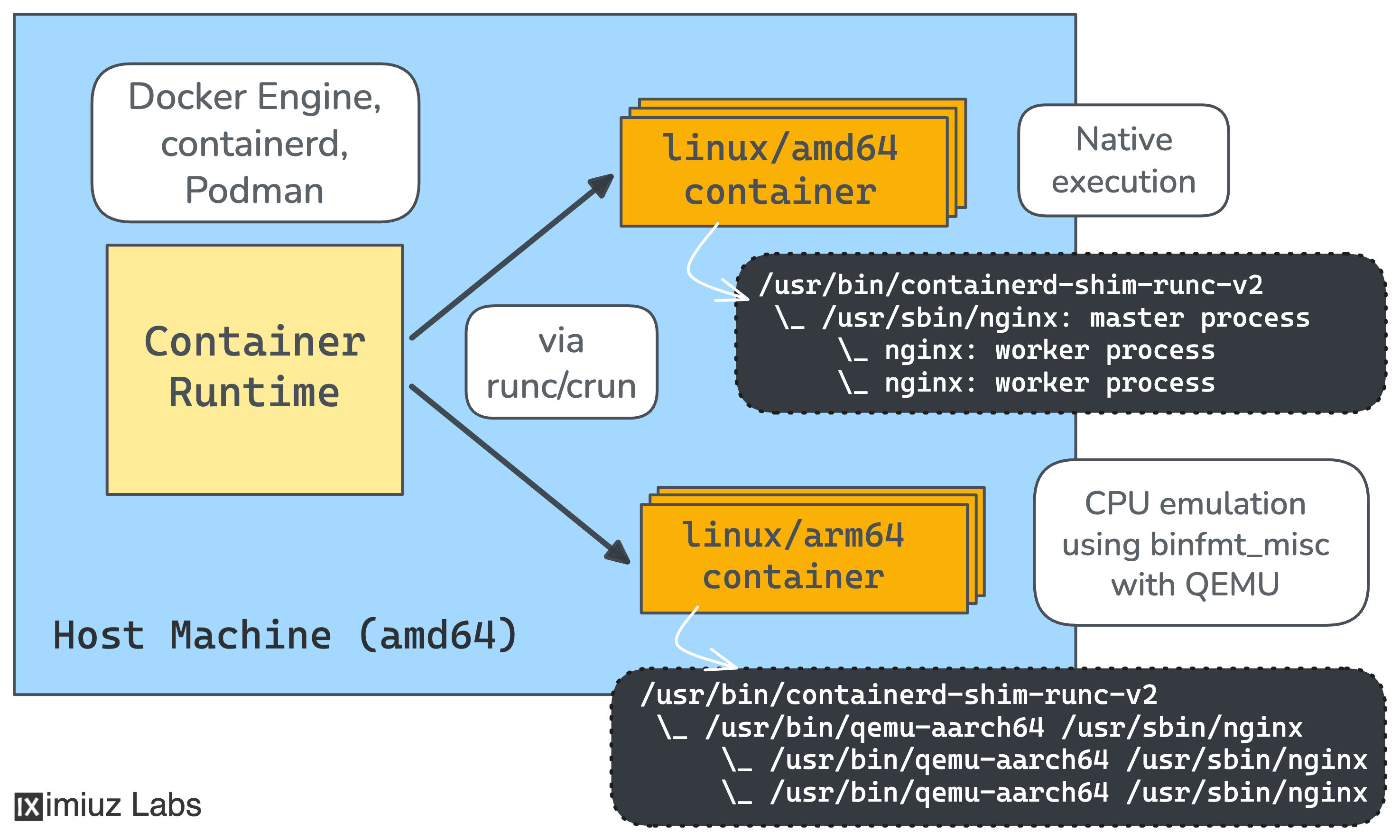 In this challenge, you will build a container image for the arm64 architecture on an amd64 host machine using QEMU user-space emulation.