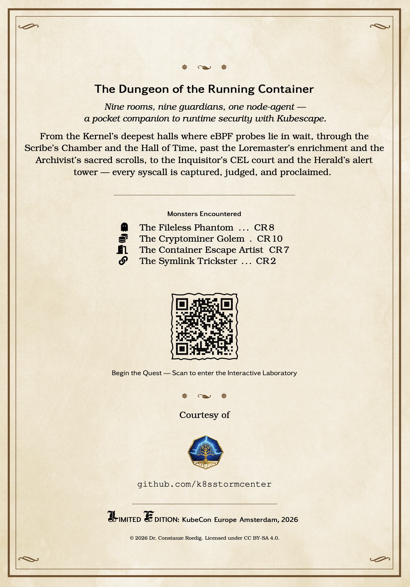 You stand at the threshold of an ancient fortress buried beneath every running container. A single event ---
