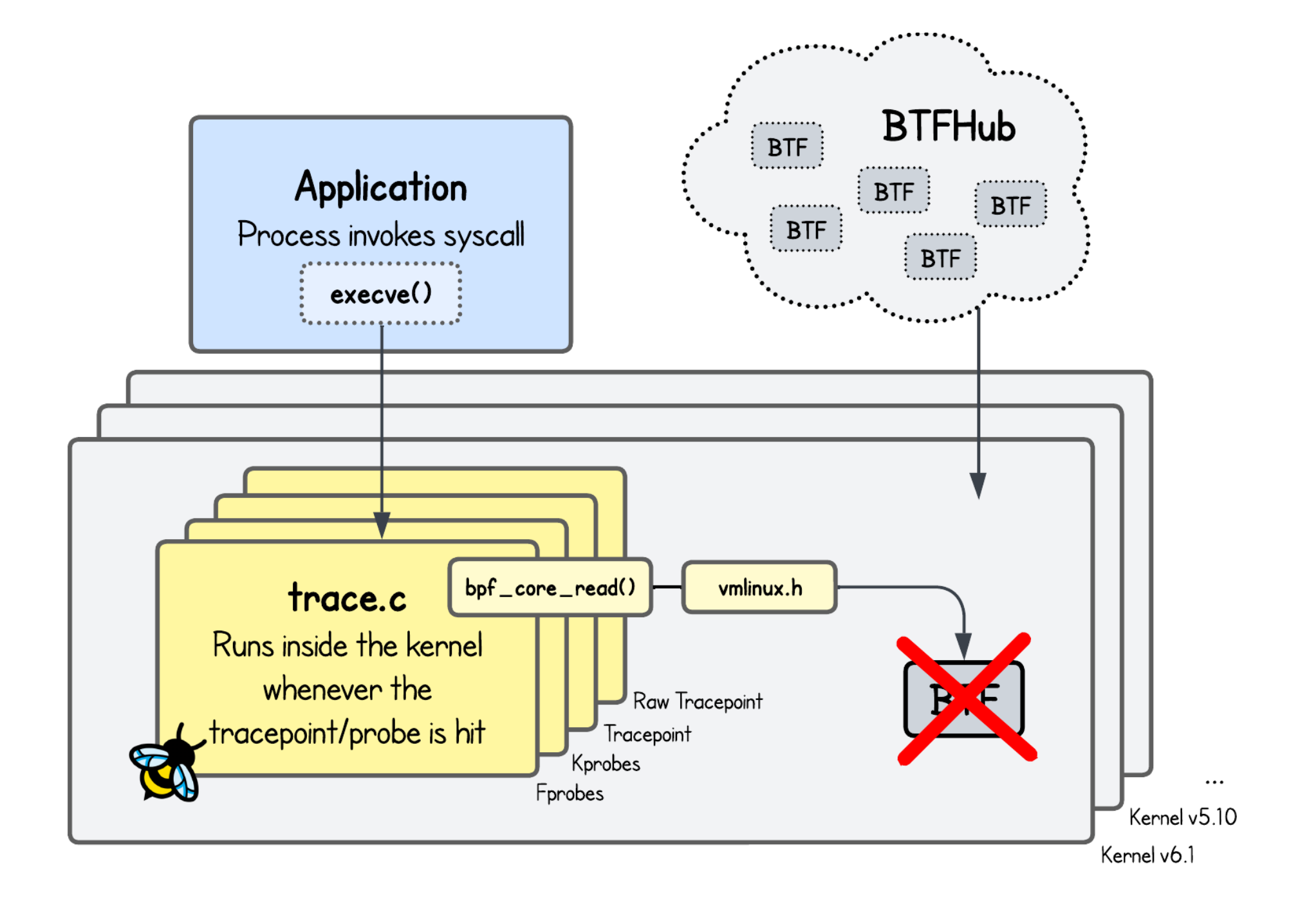 Even though most modern kernels ship with BTF support, you can’t always rely on it when wanting to build truly portable eBPF programs. Without BTF in the target kernel, the loader can’t resolve types, fix offsets, or adjust field accesses — causing your program to fail on systems that lack it.