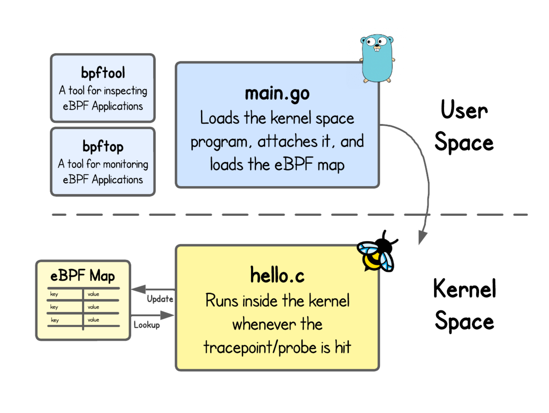 In this part, we’ll learn how to use bpftool to inspect eBPF programs and maps in the kernel, and bpftop, a top-like interface for monitoring eBPF program activity in real time.